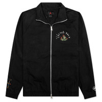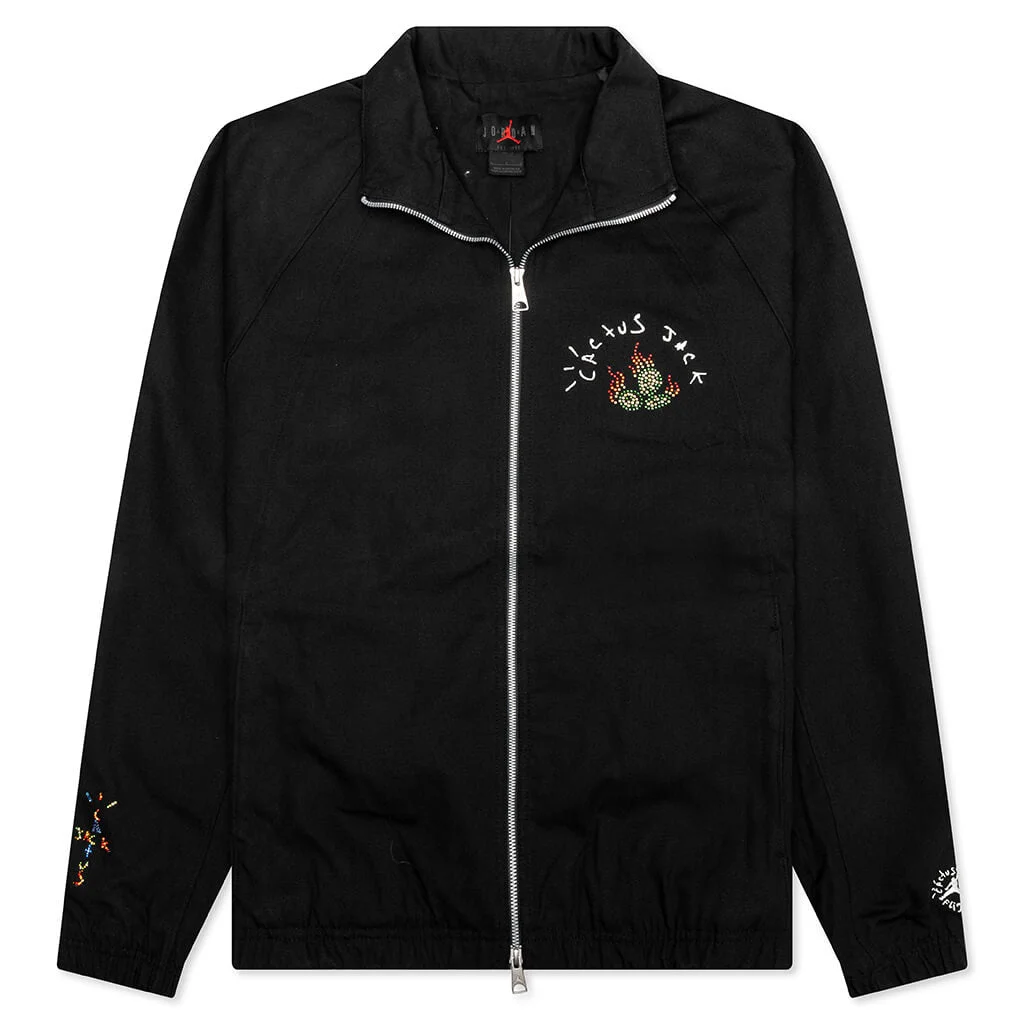 The Jordan x Travis Scott Woven Jacket is crafted from a lightweight woven fabric. The silhouette features a sleek zip-up front and a structured collar. The standout detail is the rhinestone-embellished cacti and flame design on the chest, paired with arched 'Cactus Jack' branding that nods to Travis's creative universe. Each sleeve is finished with distinct graphics—one with a multi-colored airbrush-inspired design, the other with co-branded Jumpman and Cactus Jack prints for a balanced touch of flair. DUE TO THE NATURE OF THIS PRODUCT, ALL SALES ARE FINAL. THIS PRODUCT DOES NOT QUALIFY FOR DISCOUNTS OR SPECIAL PROMOTIONS. - 100% Polyester - Zip closure - Side pockets - Rhinestone detailing - Airbrush-inspired graphics - Co-branded details - Style No: DO4095-010