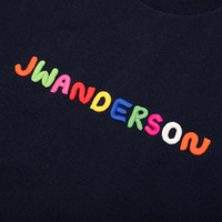 The Logo Embroidery T-Shirt from JW Anderson comes in navy blue with multicolor accents, made from cotton with a jersey texture. Featuring an embroidered logo on the front, this shirt has a crew neckline for comfortability. It's finished with ribbed trims and branded labels. - 100% Cotton - Thick embroidered graphics - Crew neckline - Ribbed trims - Style No: JT0228-PG0482-888