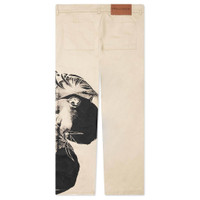 Clean cut straight trousers made with a hidden hook and eye closure with a zip-fly for a simple look that hides the fixtures of the pant to focus on the print on the right leg. The graphic is unique and original to J.W. Anderson. Made with a mid-rise and a crisp silhouette for everyday. - Hand pockets - Belt loops - Ankle length - True to size - Style No: TR0331PG1521132
