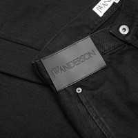 These JW Anderson Twisted Workwear Jeans in black feature a relaxed fit with an asymmetric and paneled construction. Designed with a leather logo patch at the waistband alongside the belt loops, these jeans offer a unique take on classic denim. The three-pocket styling completes the look. - 100% Cotton - relaxed-fit - Asymmetric and paneled construction - Belt loops - Leather logo patch at waistband - Three-pocket styling - Style no: DT0052-PG1595-999