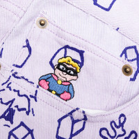 The KidSuper Doodle Drawing Pants make an impression on any streetwear apparel collection. Cut from cotton, the pants feature an all-over doodle print paired with a button closure and signature five-pocket design. The logo patch makes an impression at the rear, while an embroidered superhero character is seen at the front for a finished look. KSAW22 08 09 WHIT - 100% cotton - Regular fit - Button closure - Screen-printed graphics - Embroidered motif - Logo patch - Style No: KSAW22-08-09