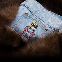 Designed to stand out, the KidSuper Fur Shorts blend bold texture with luxury craft. The exterior shell is covered in plush faux-fur while the interior takes on a denim construction. Classic features include a zip-fly with button closure and five-pocket design. The superhero embroidery, custom hardware, and leather jacron featuring KidSuper art add authenticity to the piece. - Exterior: 100% Polyester - Trims: 100% Cotton - Zip-fly with button closure - Custom hardware - 5-pocket design - Superhero embroidery on coin pocket - Leather jacron - Style No: AW25-PT-21