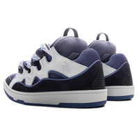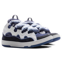 Inspired by the ‘90s, the iconic Curb Sneakers from Lanvin make a large statement in any collection. Made with a blend of nappa calfskin, suede, and mesh materials, this shoe stands out due to its rounded shape, padded tongue, and curved metallic eyelets. Lanvin branding can be found on the tongue and embossed into the side of the shoe. The double oversized herringbone laces paired with the rubber outsole finish the remainder of the design. - Calfskin/suede/mesh upper - Double oversized herringbone laces - Quilted tongue - Embossed logo - Polyester/elastane lining - Rubber outsole - All sizes are listed in European Men’s sizing unless stated otherwise - Style No: FU-SKDK12-BICO-E25-1029