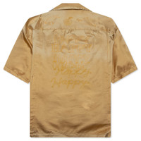 The Bowling S/S Shirt from Maison Mihara Yasuhiro is crafted from a soft blend of cotton and rayon. The satin bowling shirt features classic details like a cuban collar, button-up closure, and dual chest pockets. Tonal chain-stitch embroidery sits at the chest and back, while woven brand tags add a signature touch. - 58% Cotton, 42% Rayon - Satin fabric - Cuban collar - Button-up front - Bowling pin-shaped buttons - Tonal chain-stitch embroidery - Chest pockets - Woven brand tags - Style No: J14SH186-YEL