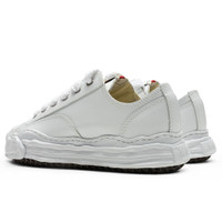 Upgrade the traditional sneaker with the Hank Low OG Sole Toe Cap Leather Sneaker. Featuring a leather upper, the modern design features chunky cotton laces that are placed among subtle stitched lining. A Maison Mihara tag is placed at the tongue for additional detail. A rubber toe cap appears for enhanced durability. The exaggerated midsole spotlights the silhouette while the rubber outsole enhances overall durability and integrity with each step. - Leather upper - Chunky laces - Tongue label - Rubber toe cap - Stitched lining - Rubber outsole - All sizes are listed in European Men’s sizing unless stated otherwise - Style No: A05FW704-WHT