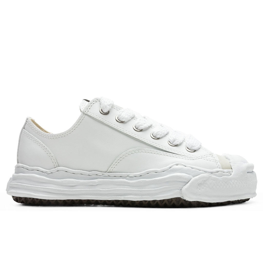 Upgrade the traditional sneaker with the Hank Low OG Sole Toe Cap Leather Sneaker. Featuring a leather upper, the modern design features chunky cotton laces that are placed among subtle stitched lining. A Maison Mihara tag is placed at the tongue for additional detail. A rubber toe cap appears for enhanced durability. The exaggerated midsole spotlights the silhouette while the rubber outsole enhances overall durability and integrity with each step. - Leather upper - Chunky laces - Tongue label - Rubber toe cap - Stitched lining - Rubber outsole - All sizes are listed in European Men’s sizing unless stated otherwise - Style No: A05FW704-WHT