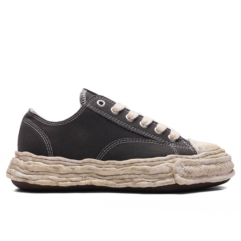 Step into style with the Peterson 23 Vintage Low OG Sole by Maison Mihara Yasuhiro. This sneaker reimagines classic canvas sneakers with warped silhouettes and lived-in details. The canvas upper is paired with exposed stitching and panel detailing. To complete the look, Mihara's signature OG sole—originally shaped in clay by the designer—features a chunky, asymmetrical design to give it that signature edge. - 100% Cotton Canvas upper - Vintage wash - Round toe - Low top - Logo on the tongue - Asymmetrical rubber sole - Worn-in detailing on sole - All sizes are listed in European Men’s sizing unless stated otherwise - Style No: A13FW713-GRY