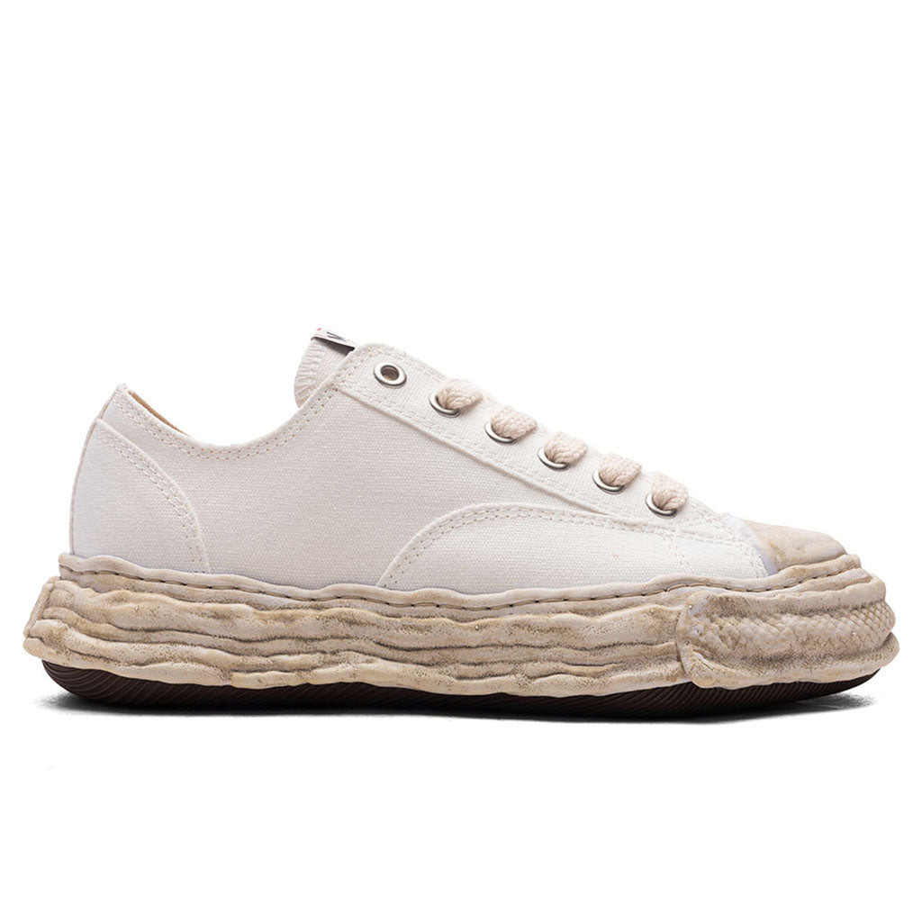 Step into style with the Peterson 23 Vintage Low OG Sole by Maison Mihara Yasuhiro. This sneaker reimagines classic canvas sneakers with warped silhouettes and lived-in details. The canvas upper is paired with exposed stitching and panel detailing. To complete the look, Mihara's signature OG sole—originally shaped in clay by the designer—features a chunky, asymmetrical design to give it that signature edge. - 100% Cotton Canvas upper - Vintage wash - Round toe - Low top - Logo on the tongue - Asymmetrical rubber sole - All sizes are listed in European Men’s sizing unless stated otherwise - Style No: A13FW713-WHT