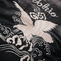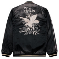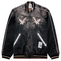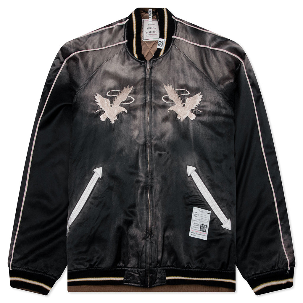 Stay warm with the Souvenir Jacket from Maison Mihara Yasuhiro. Constructed from a premium cotton and rayon blend, the jacket is fully lined to ensure warmth. Classic details include a zip-front closure, ribbed knit trims, and side-entry pockets. Decorated with artful embroidery on the front and back and finished with a faded treatment for a worn-in aesthetic. - Shell: 58% Cotton, 42% Rayon - Lining: 58% Cotton, 42% Rayon - Fading treatment - Zip-front closure - Embroidered graphics - Striped, ribbed knit trims - Side-entry pockets - Rope piping details - Woven brand tags - Style No: J14BL141-BLK