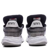 Elevate your look with the Wayne Puffer Low OG Sole Brushed Shrink Leather from Maison Mihara Yasuhiro. Crafted from premium cow leather, the sneakers feature a distinctive puffer-style upper for visual aesthetic. The shrink leather upper has a brushed finish that gives the shoe a worn-in look. To complete the shoe, Mihara's signature OG sole—originally shaped in clay by the designer—features a warped, asymmetrical design to give it that signature edge. - Puffer-style design - Shrink leather upper - Brushed finish - Oversized tongue - Chunky laces - Logo patch on the tongue - Printed branding on heel tab - Perforated toebox - Asymmetrical rubber sole - All sizes are listed in European Men’s sizing unless stated otherwise - Style No: A14FW732-BLK