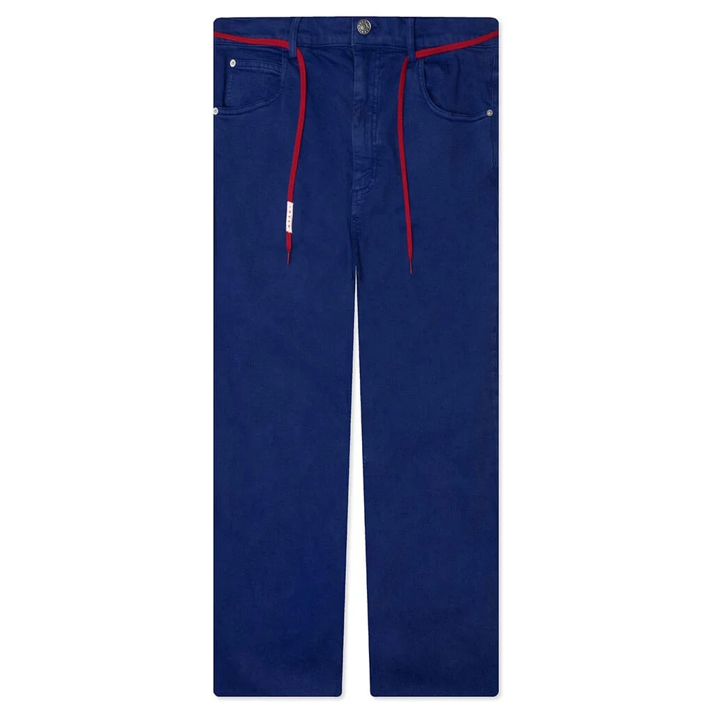 The Blue Flared 5 Pocket Trousers makes a statement in any contemporary apparel rotation. The design features a blend of cotton and elastic, while the trousers incorporate a garment-dyed aesthetic. The silhouette features belt loops along with a zip fastening. The leather logo label wraps up the remainder of the design. - Cotton/elastic blend - Regular fit - Belt loops - Zip fastening - Leather logo label - Flared design - Style No: PUJU0019A0 USCV12 DDB59