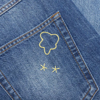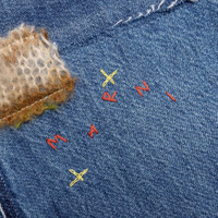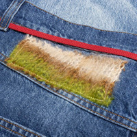 BLUE ORGANIC DENIM JEANS WITH MOHAIR PATCHES - IRIS BLUE
