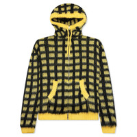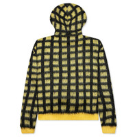 YELLOW CHECKED MOHAIR HOODED CARDIGAN