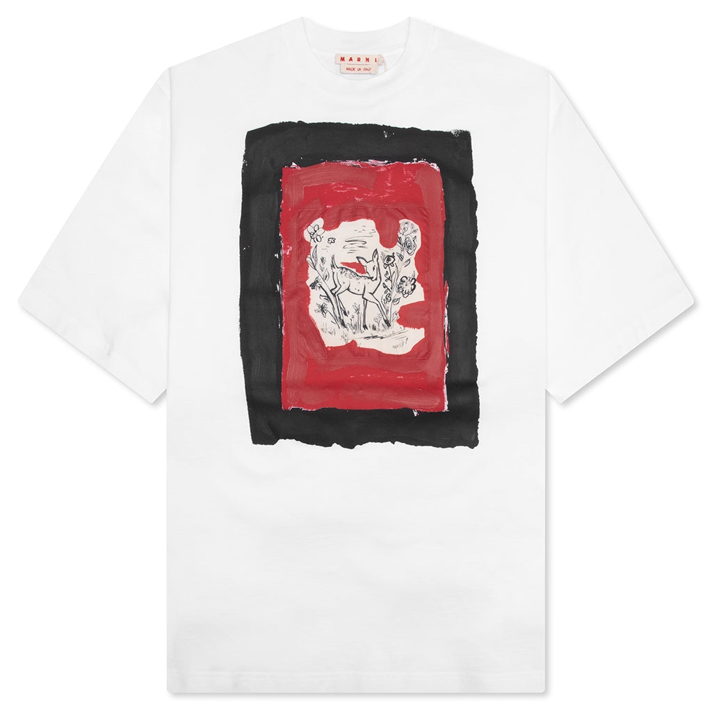 The Marni T-shirt in lily white is made from cotton, offering a soft and breathable fit. Featuring a relaxed silhouette, this versatile tee is perfect for layering or wearing on its own. The subtle Marni logo embroidered on the hem adds a refined touch, while the crisp lily white color provides a fresh, clean look. - 100% cotton - Relaxed fit for comfort - Marni logo embroidery - Style No: HUMU0223QP USCX69 00W01
