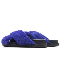 The Marni Fussbett Slide Sandal takes on an elevated aesthetic in its design. The sandal features a polyester criss-cross strap crafted from soft spongy terry cloth material. The leather insole, micro midsole, and jute outsole offer additional dimension. The embroidered Marni logo at the side ties together the Italian-crafted silhouette. - Spongy terry cloth criss-cross strap - Leather insole - Micro midsole - Jute outsole - Embroidered branding - Rubber outsole - All sizes are listed in European Men’s sizing unless stated otherwise - Style No: FBMR002501 P5441 00B56