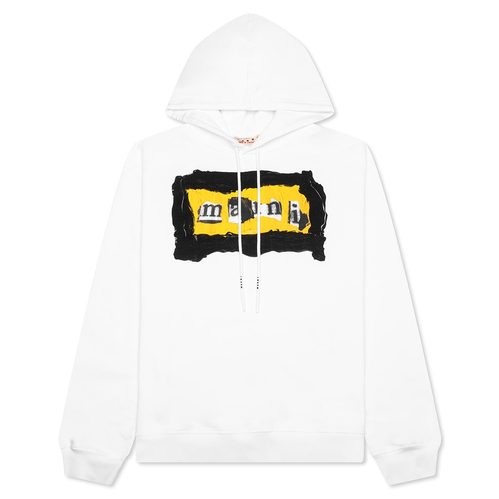The Marni Painted On Collage Yellow Logo Hoodie is made from a soft cotton blend, offering both comfort and style. Ribbed cuffs and hem provide a tailored fit, while the relaxed silhouette ensures ease of movement. The bright lily white color adds a fresh, clean look to your casual wardrobe, while the subtle Marni logo on the chest adds a refined, signature detail. - Cotton blend - Ribbed cuffs and hem - Relaxed silhouette for comfort - Style No: FUMU0137P6 USCX90 00W01