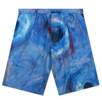 The Marni Silk Habotai Stretch Waist Shorts make an impression with their elevated aesthetic. The silhouette features an elastic waistband along with belt loops and a button and zip fly. The front pleats, side and rear pockets, and all-over artwork wrap up the design. - 100% silk - Elastic waistband - All-over artwork - Button/zip fly - Side pockets - Rear pockets - Style No: PUMU0049A4 UTSF97 BBB44