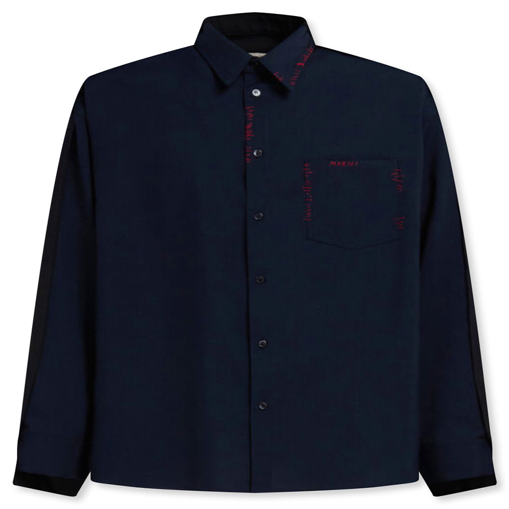 The Marni Tropical Wool Shirt is crafted from 100% virgin wool in a boxy half-and-half design. Raw-cut edges and a contrast back highlight the patchwork construction, while a button closure and chest pocket ground the silhouette in classic shirting details. An embroidered Marni logo finishes the look. - 100% Virgin wool - Boxy fit - Raw-cut edges - Chest pocket - Embroidered logo - Style No: CUMU0278QS TW839 00B99