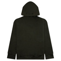 The Logo Knit Hoodie in Olive is made from soft cotton, featuring a drawstring hood and a kangaroo pouch for practicality and comfort. It showcases a cracked screen-printed graphic on both the front and back, giving it a distinct, worn-in look that adds character to your casual style. - 100% Cotton - Kangaroo pouch - Drawstring hoodie - Cracked screen printed graphic front & back - Style No: MW24S13-SW022-001-BLK
