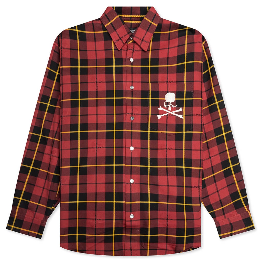 The Plaid Long Sleeve Woven Shirt in Burgundy Plaid is made from pure cotton, offering a comfortable and breathable fit. It features a button closure with embroidered branding on both the chest and back, adding subtle yet distinctive detailing to this classic plaid design. Ideal for everyday wear with a touch of elevated style. - 100% Cotton - Button closure - Embroidered logo at chest - Embroidered brand lettering on back - Style No: MW24S13-SH002-021-BURG