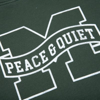 Museum of Peace and Quiet embraces minimalist design with the Banner Hoodie. Crafted from cotton, this hoodie is cut to have a regular fit and ensures comfort and durability. It features a fixed hood, kangaroo pocket, and ribbed trims, making it a versatile addition to any wardrobe. Screen-printed branding completes the look. MOPQ WNTR25 12 FORE - 100% Cotton - Regular fit - Fixed hood - Screen-printed graphics - Kangaroo pocket - Ribbed trims - Style No: MOPQ-WNTR25-12-FOR