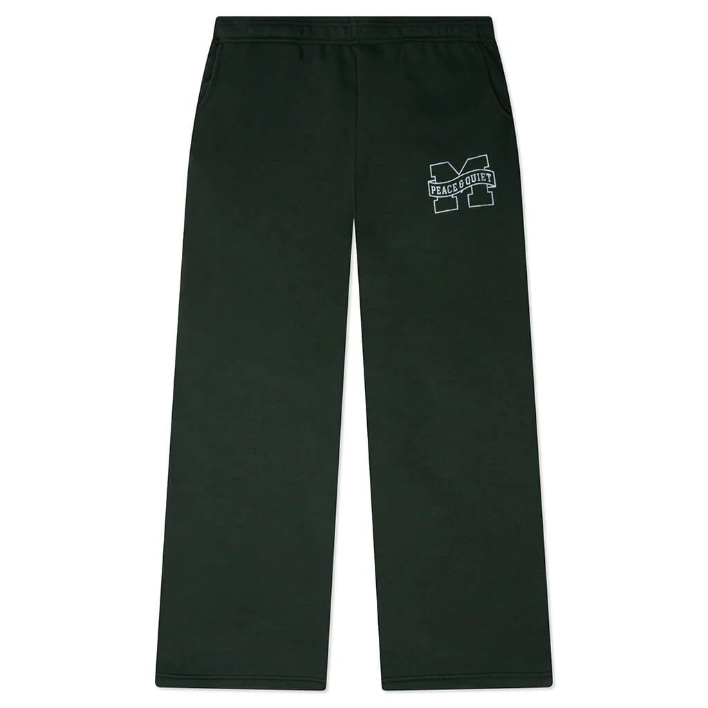 Museum of Peace and Quiet embraces minimalist design with the Banner Sweatpants. Made from cotton fleece, the sweatpants are cut to have a relaxed fit. Classic details include an elastic drawstring waistband, side-seam pockets, and a rear pocket. Screen-printed branding adds a signature touch. MOPQ WNTR25 20 FORE - 100% Cotton - Elastic waistband - Adjustable drawstring - Screen-printed graphics - Side-seam pockets - Rear pocket - Style No: MOPQ-WNTR25-20-FOR