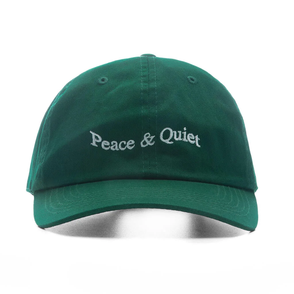 Introducing the Museum of Peace and Quiet Wordmark Dad Hat. Designed in a six-panel fit with a forest-inspired colorway, this hat is made from a 100% cotton. An embroidered logo sits at the front, while ventilation eyelets allow breathability. Finished with an strapback closure and curved brim. - 100% Cotton - 6-panel hat - Embroidered logo - Ventilation eyelets - Curved brim - Strapback closure - Style No: MOPQ-WNTR25-25-FOR
