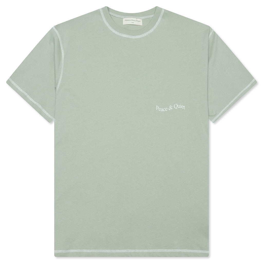 The Wordmark Reverse Stitched T-Shirt is the latest addition to Museum of Peace and Quiet's collection. Cut from soft cotton with a relaxed fit, this tee features a ribbed crew neckline. Contrast stitching outlines the tee's structure, while a screen-printed wordmark adds a subtle touch of branding. - 100% Cotton - Relaxed fit - Crew neckline - Ribbed collar - Screen-printed wordmark - Contrast stitching - Style No: MOPQ-FALL25-01-SAG