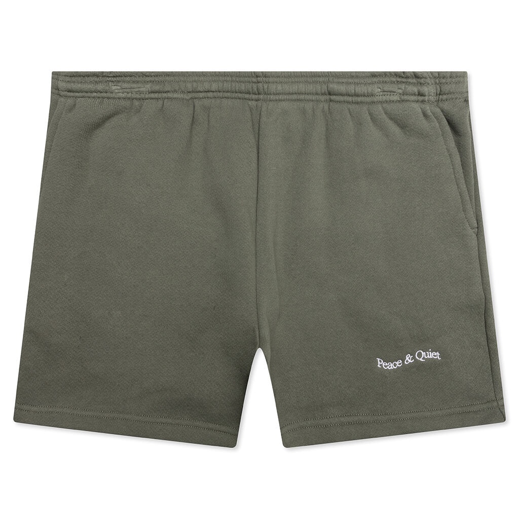Museum of Peace & Quiet introduces the Wordmark Sweatshorts. These shorts are made of 100% cotton and have an elasticated waistband for comfort. Embroidered graphics at the thigh add further dimension, while the front pockets and back pocket round out the look. - 100% Cotton - Elasticated waistband - Elastic cuffs - Embroidered graphics - Side seam pockets - Back pocket - Garment dyed - Style No: MOPQ-SS25-23-OLI