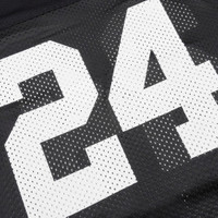 The 24 Mesh Boxy Jersey from Nahmias makes an impression with its airy open mesh construction. Cut from polyester, this garment features a jersey-style screen-printed '24' at the front and a v-neckline. The boxy fit gives a comfortable wear, while the custom woven label tag adds dimension and completes the look. - 100% Polyester - V-neckline - Open mesh - Screen-printed '24' - Custom woven label - Style No: W79-T26G37-001