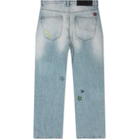 The Bandaid Baggy Jeans bring a playful twist to classic denim. Made from 100% cotton in a light-wash hue, they're designed to have a relaxed, baggy silhouette. Fun graphics are scattered throughout the jeans giving it a handcrafted vibe while distressed details make them feel worn-in. A classic 5-pocket construction, button closure, and branded leather patch complete the look. - 100% Cotton - Baggy fit - Light wash with intentional fading - 5-pocket construction - Button closure - Holes in the leg - Printed graphics - Branded leather patch - Custom hardware - Style No: D5-P43Q15-415