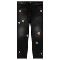 The Charcoal Wash Sun Beaded Wide Jeans are made from pure cotton and feature a baggy, wide-leg fit. These jeans come with five-pocket styling and hand-beaded sun motif patches all over. They also include a Nahmias button closure, belt loops, and undergo a special wash technique and treatment for a unique finish. Perfect for making a bold fashion statement. - 100% cotton - five-pocket styling - baggy wide-leg fit - hand beaded sun motifs patches all over jeans - nahmias button closure - belt loops - special wash technique & treatment - Style No: D6-P41D15E3-993