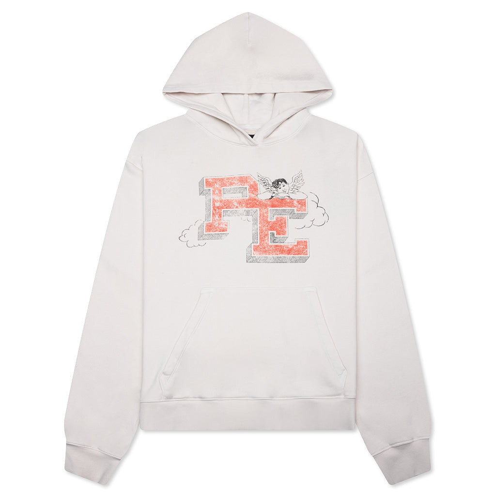 The P.E. Cherub Hoodie from Nahmias is the brand's latest addition. Composed of cotton, this hoodie has a hooded collar and features the P.E. Cherub motif screen print at the front. The garment has been treated with a vintage wash for a more lived-in feel. Some technical details like the dropped shoulders, kangaroo pockets, and ribbed trims complete the look. - 100% Cotton - Made in Los Angeles - Dropped shoulders - Cherub motif - Ribbed trims - Hooded collar - Kangaroo pocket - Style No: Y2-H1F18-106
