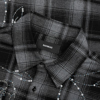 PLAID BEADED OVERSIZED SHIRT - BLACK