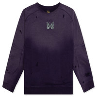 Needles presents the Cotton French Terry Deconstructed Sweatshirt. Crafted from cotton, it is cut to have a regular fit and features a crew neckline and raglan sleeves. Dart details and ribbed side panels add visual dimension. Distressing and fading gives the piece a lived-in look, while a screen-printed motif sits at the front. Finished with ribbed trims. - 100% Cotton - Regular fit - Crew neckline - Raglan sleeves - Screen-printed logo - Ribbed side panels - Dart details - Distressing and fading - Ribbed trims - Style No: RW336-B-PUR