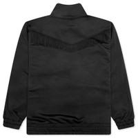 The Needles Fringe Track Jacket elevates itself from the everyday apparel item. The silhouette is cut entirely from polyester twill and spotlights a funnel collar. The fringed trim at the front and back yoke highlights the jacket. A full-zip closure secures the fit, while the zippered hand pockets add a functional touch. Ribbed detailing is seen at the cuffs and hem for added dimension. A subtle embroidered butterfly resides at the chest to finish the look. - 100% Polyester twill - Funnel neck - Zipper closure - Fringe detailing - Zipper pockets - Elasticated hem and cuffs - Style No: PU281-B