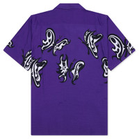 The Needles x Kae Tanaka Kt Papillon S/S One-Up Shirt makes an elevated statement in any apparel collection, crafted from 100% Rayon for a lightweight, breathable feel. This collaborative piece features an all-over papillon graphic integrated into the fabric across the sleeves, back, and front, delivering a vivid yet refined aesthetic. Designed with a flat hem and short sleeves, it’s finished with a single collar, four-button front, and a discreet fifth button at the neckline—ideal for securing a tie or leaving undone for a relaxed, Hawaiian-style look. A single-stitched hemline and flat back complete the streamlined silhouette. This collaborative piece is made in Japan and blends elevated craftsmanship with classy-ready style. QV432 C PURP - 100% Rayon - All-over integrated papillon graphic - Short sleeves - Single collar - Four-button front with fifth button at neck - Flat hem - Single-layer stitched hemline - Lightweight fabric - Made in Japan - Style No: QV432-C