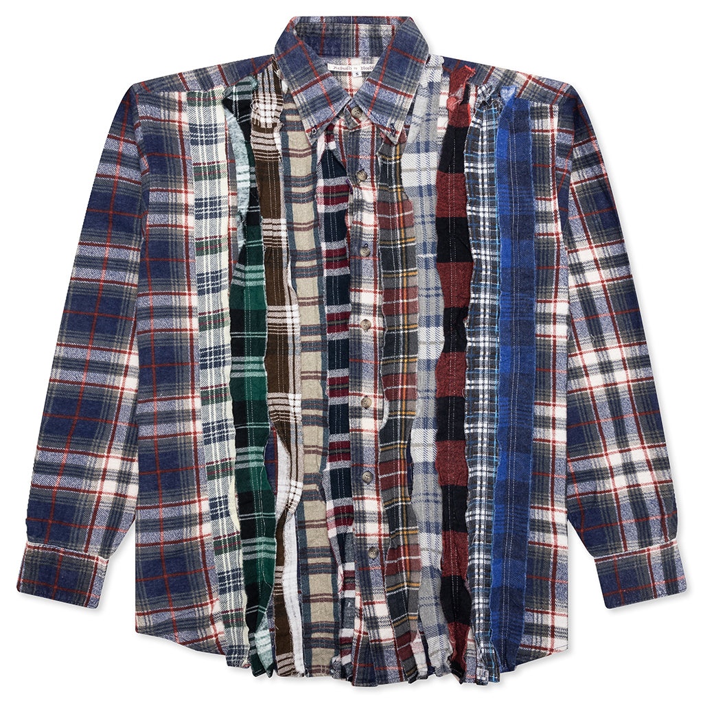 The Needles Ribbon Flannel Shirt is a must-have apparel silhouette for any collection. The design is made from an assortment of vintage flannels stitched together to create multiple ribbon cuts, a signature for the brand. Each garment is unique and will feature various cuts and patterns. The eclectic design is composed entirely of cotton and features a button-down closure and a classic collar. The patch pocket wraps up the design. - 100% Cotton - One-of-one - Reworked design - Flannel fabric - Button-down closure - Classic collar - Chest pocket - Style No: PU350-AS-2
