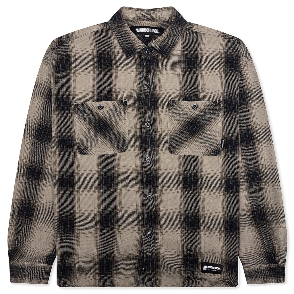 SAVAGE BLOCK HOMBRE CHECK SHIRT LS - GREIGE