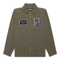 The Neighborhood Washed Zip Work Jacket makes an impression on any outerwear streetwear collection. Composed of cotton, the jacket features a custom embroidery design, a pointed collar, and button cuffs. A full-zip closure is placed in addition to the hand pockets. - 100% Cotton - 100% Polyester lining - Full-zip closure - Embroidered imagery - Side pockets - pointed collar - Style No: 241SPNH-JKM05-OD