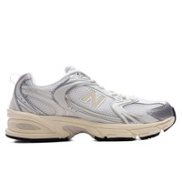 The 530 in Silver Metallic/Linen merges nostalgic Y2K aesthetics with modern comfort. Featuring a breathable mesh upper with synthetic overlays, this sneaker offers a layered design with a contemporary edge. The ABZORB cushioning and visible air unit provide all-day support, while the rubber outsole ensures durability. Finished with branded side panels and a lace-up closure, this style blends retro-inspired details with functional performance. - Mesh upper - Air unit - Rubber outsole - Lace up closure - Synthetic overlays - Y2K tech details - Branded side panels - ABZORB cushioning - All sizes are listed in US Men's sizing unless stated otherwise - Style No: U530ESB