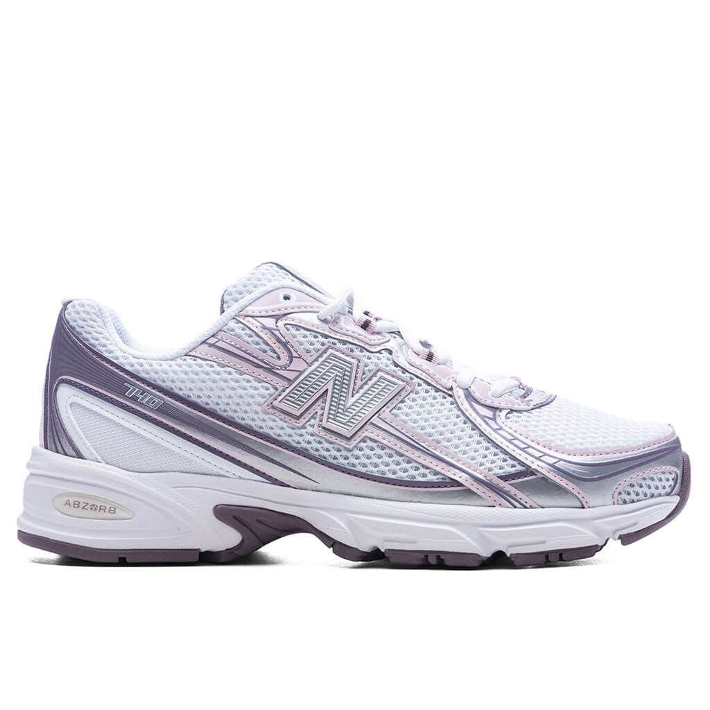 The New Balance 740 in Ice Wine/White/Rose Sugar/Silver Metallic delivers a sleek blend of performance and style. A breathable mesh upper with synthetic overlays ensures lightweight durability, pink reflective accents enhance visibility. The ABZORB midsole provides superior impact absorption for all-day comfort, and the molded TPU 'N' logo adds a modern touch. Finished with a secure lace-up closure, this silhouette offers versatile functionality with a polished look. - Mesh upper - Synthetic overlays - Lace up closure - ABZORB midsole absorbs impact through a combination of cushioning and compression resistance - Molded TPU 'N' logo - Reflective accents - All sizes are listed in U.S. Men's sizing unless stated otherwise - Style No: U740PK2