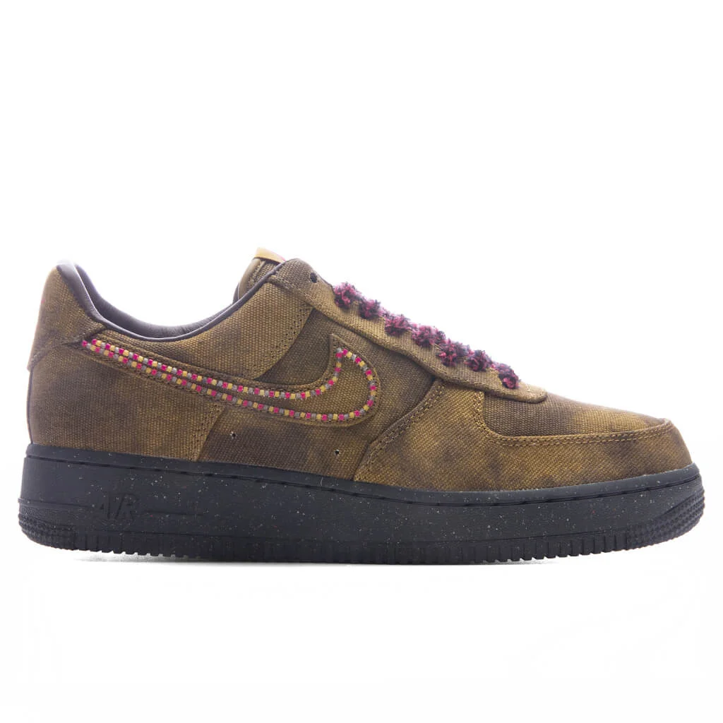 The Nike Air Force 1 in Baroque Brown and Desert Moss features a textured boucle upper made from curled fabric. Design details include chenille laces, a speckled midsole, and a beaded border surrounding the Nike Swoosh. Finished in earthy tones, the pair offers a subtle update to the classic Air Force 1 silhouette. EXCLUDED FROM SALE. - Boucle upper - Curled fabric - Chenille laces - Beaded Swoosh - Speckled midsole - All sizes listed in U.S. Men's sizes unless stated otherwise - Style no: IO4474-300