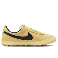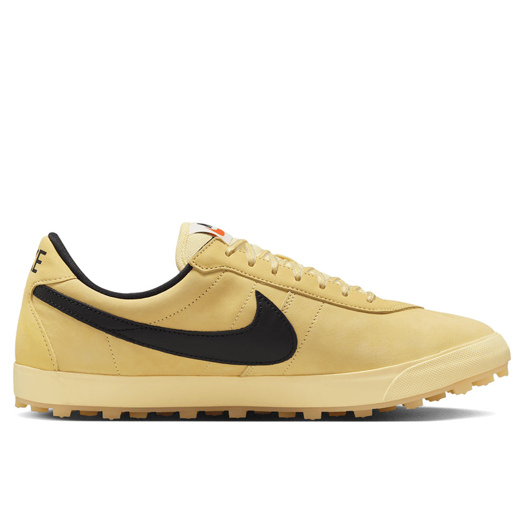 The Nike Astrograbber makes a comeback, still sticking to its design inspired by having a better grip on American football fields. Made with a supple leather upper in a Soft Yellow colorway, complemented by black bold Swooshes, giving it timeless style. Nike branding is placed on the tongue with a woven label and on the heel. The iconic Bowerman waffle pattern outsole offers traction and stability, allowing performance while giving an authentic aesthetic. - Supple leather upper - Nylon tongue - Lace closure - Nike Branding - Bowerman waffle traction pattern outsole - Style No: IH2341-700