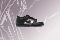 The Nike Dunk Low Retro Premium gets a new translucent look in the Pink Rise/Black colorway. Made with a black leather upper that is complemented by transparent panels on the sides and toe box, giving it a vibrant look. This sneaker includes a perforated toe box for breathability and a traditional lace-up closure for a secure fit with lace dubraes. A foam midsole for lightweight cushioning and a rubber outsole ensures lasting durability, while a woven tongue label, Nike Swoosh on the side panels, and embroidered branding on the heel tab complete its timeless design. - Leather upper - Transparent panels - Chrome lace dubraes - Lace closure - Nike branding - Embroidered branding details - Perforated toe box - Rubber outsole - All sizes are listed in U.S. Men's sizing unless stated otherwise - Style No: IM3077-600