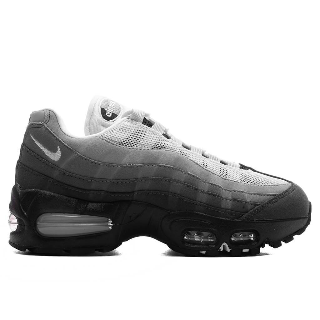 To celebrate the 30th anniversary of the iconic Nike Air Max 95, the Air Max 95 OG 'Blue Tint' makes a bold return. Rippling layers of synthetic layer and delicate mesh that features its gradient grey fade on the upper. Blue Tint accents on the lace loops, tongue, upper, and air units brings standout style. Nike Air Max branding details on the tongue and heel give its signature design. Air units in the midsole provide cushioning and support in every step but this time with a "Big Bubble" under the heel, bringing more Air for the journey. - Leather and mesh upper - Lace closure - Nike Air branding - Air Max cushioning - Rubber outsole - All sizes are listed in U.S. Women's sizing unless stated otherwise - Style No: HJ5996-002