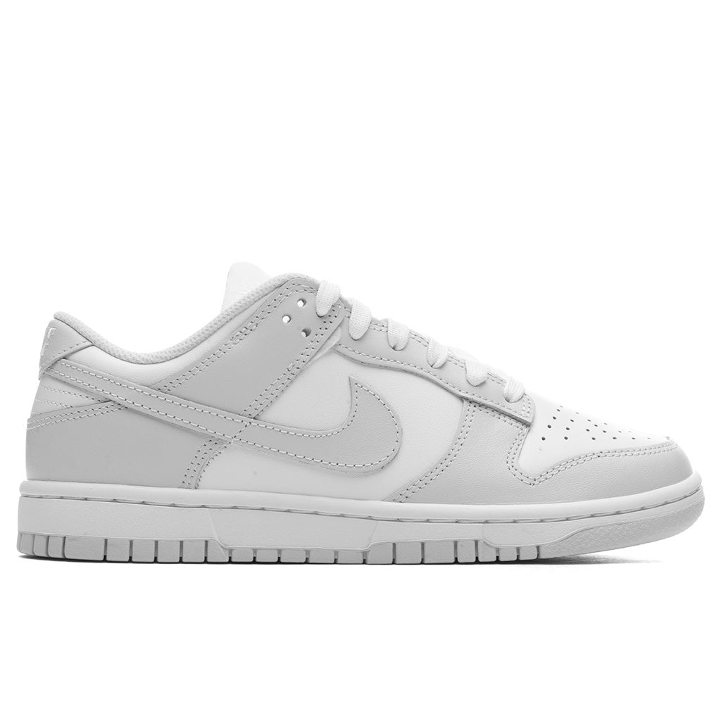 The Dunk Low Retro in White and Photon Dust Photon Dust delivers a timeless design with bold color blocking. Featuring a leather upper for durability and style, the silhouette includes a perforated toe box for breathability and a classic lace-up closure. A rubber outsole ensures reliable traction, while details like the woven tongue label, Nike Swoosh on the side panels, and embroidered branding on the heel tab complete the iconic look. - Leather upper - Lace up closure - Perforated toe box - Rubber outsole - Woven tongue label - Nike swoosh on side panels - Embroidered branding on heel tab - All sizes are listed in U.S. Women's sizing unless stated otherwise - Style No: DD1503-103