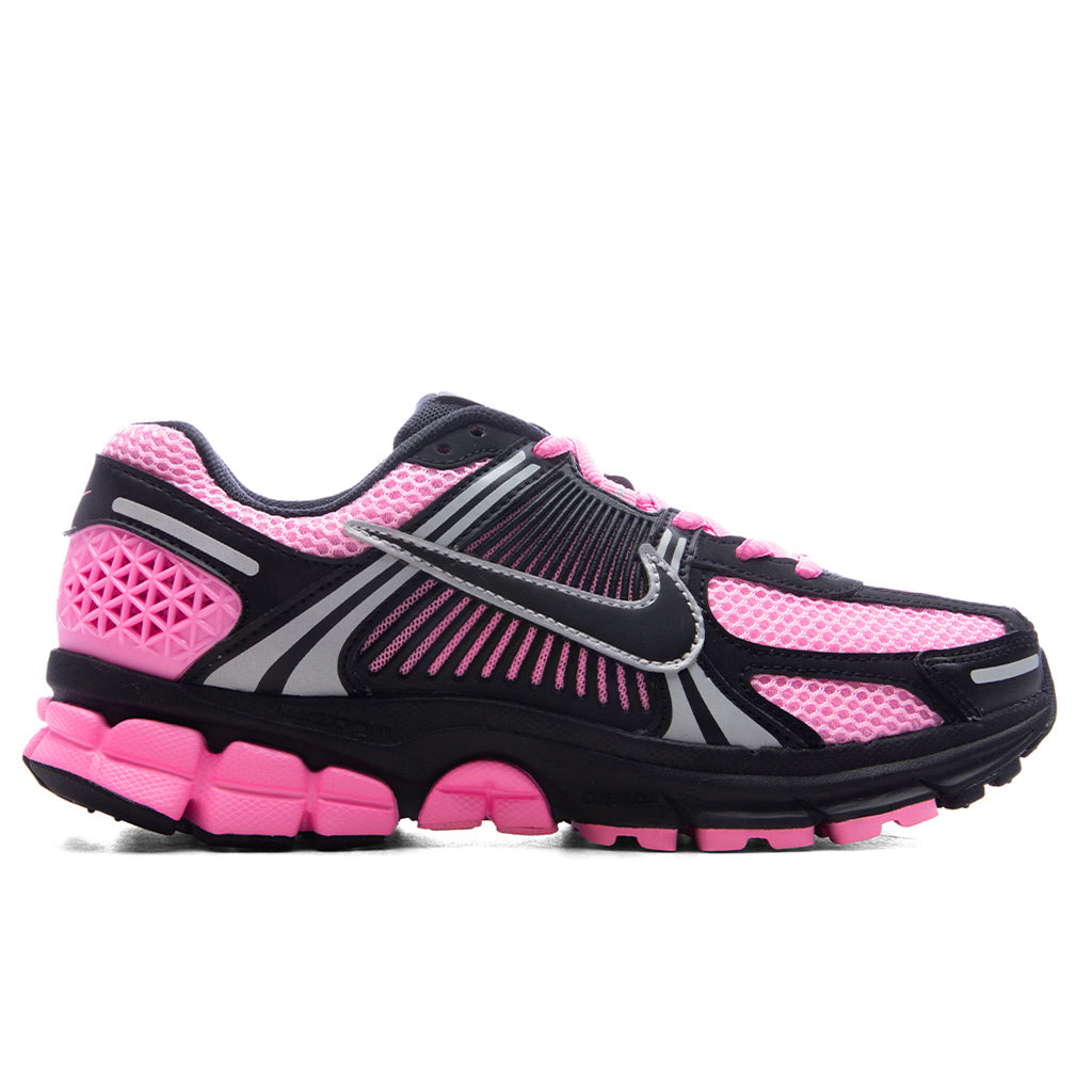 Nike's commitment to craftsmanship shines in the Women's Nike Zoom Vomero 5 in Pink Spell/Black/Metallic Platinum. This iteration blends retro aesthetics with comfort and versatility, featuring mesh, leather, and TPU overlays. CushIon foam combines with Zoom Air technology underfoot, staying true to the Vomero comfort. The collar pays homage to traditional stitching, adding a unique touch to this stylish and performance-oriented release that caters to athletic and casual preferences. - Mesh upper - Leather overlays - TPU caging - Zoom Air technology - CushIon foam - Rubber outsole - All sizes are listed in U.S. Women's sizing unless stated otherwise - Style No: FJ2028-601