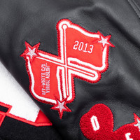 Black Dices Leather Wool Varsity Jacket