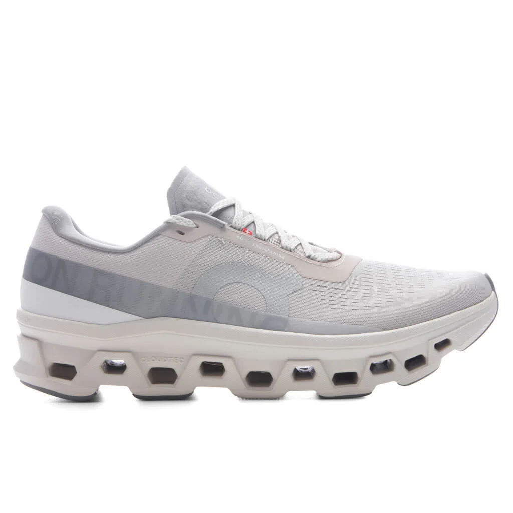 Unleash your running potential with the On Cloudmonster in Pearl/Ivory. Designed for maximum cushioning and energy return, this sneaker features the biggest-ever CloudTec® cushion and a reworked dual-density Helion™ superfoam for added bounce. The nylon-blend Speedboard® launches you forward with powerful take-offs, while the foam insert in the forefoot absorbs impact for a smoother ride. - Nylon-blend Speedboard® - Reworked dual-density Helion™ superfoam adds bounce - Improved sustainability - Speedboard® made from nylon blend - Mesh on the upper made from 100% recycled polyester - Foam insert in the forefoot to absorb impact - All sizes are listed in US Men's sizing unless stated otherwise - Style No: 3MF30742143